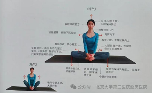 动作:脚心相对,双膝外展,背部挺直。