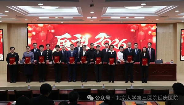 延庆区卫生健康委二级调研员薛亚春代表区卫生健康委向受到表彰的集体和个人表示衷心的祝贺,对区医院在2025年取得的成绩给予充分的肯定,并对下一步工作提出三点要求,一是强化党建引领,深度融合党建与业务,凝聚发展合力;二是依托北医三院平台,强化学科与人才建设,提升医疗质量;三是抓实医德医风,以群众满意为导向,守护群众健康。