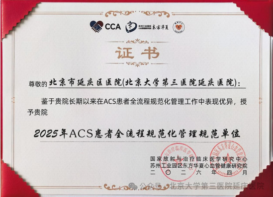 喜报!北京市延庆区医院获评全国ACS患者全流程规范化管理规范单位